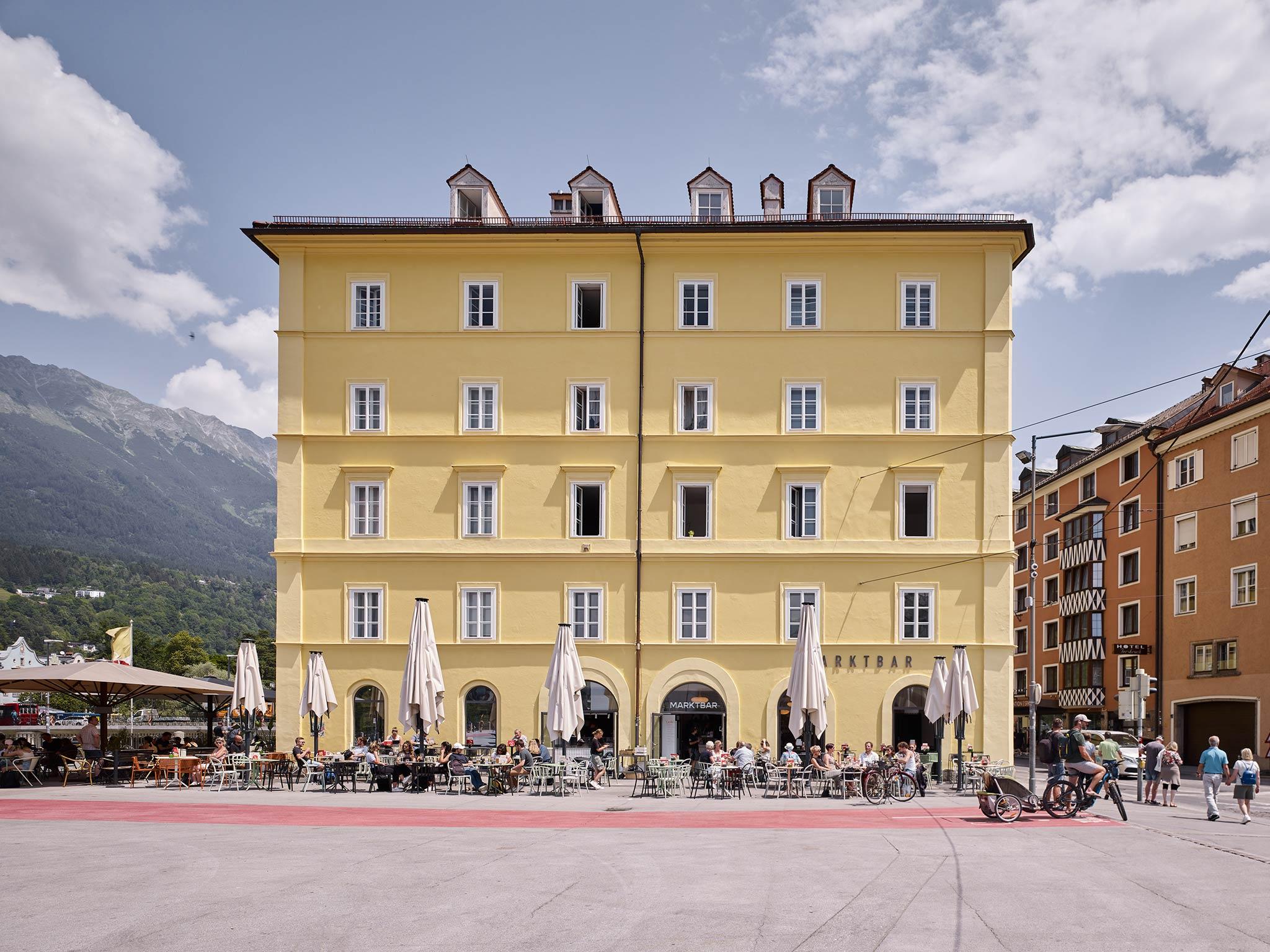 Discover the Marktbar am Inn - your retreat full of flair! Enjoy delicious food and refreshing drinks in the bright sunshine while savouring the breathtaking view of the Nordkette mountain range. Whether with friends or family, here you can experience conviviality and enjoyment in perfect harmony.