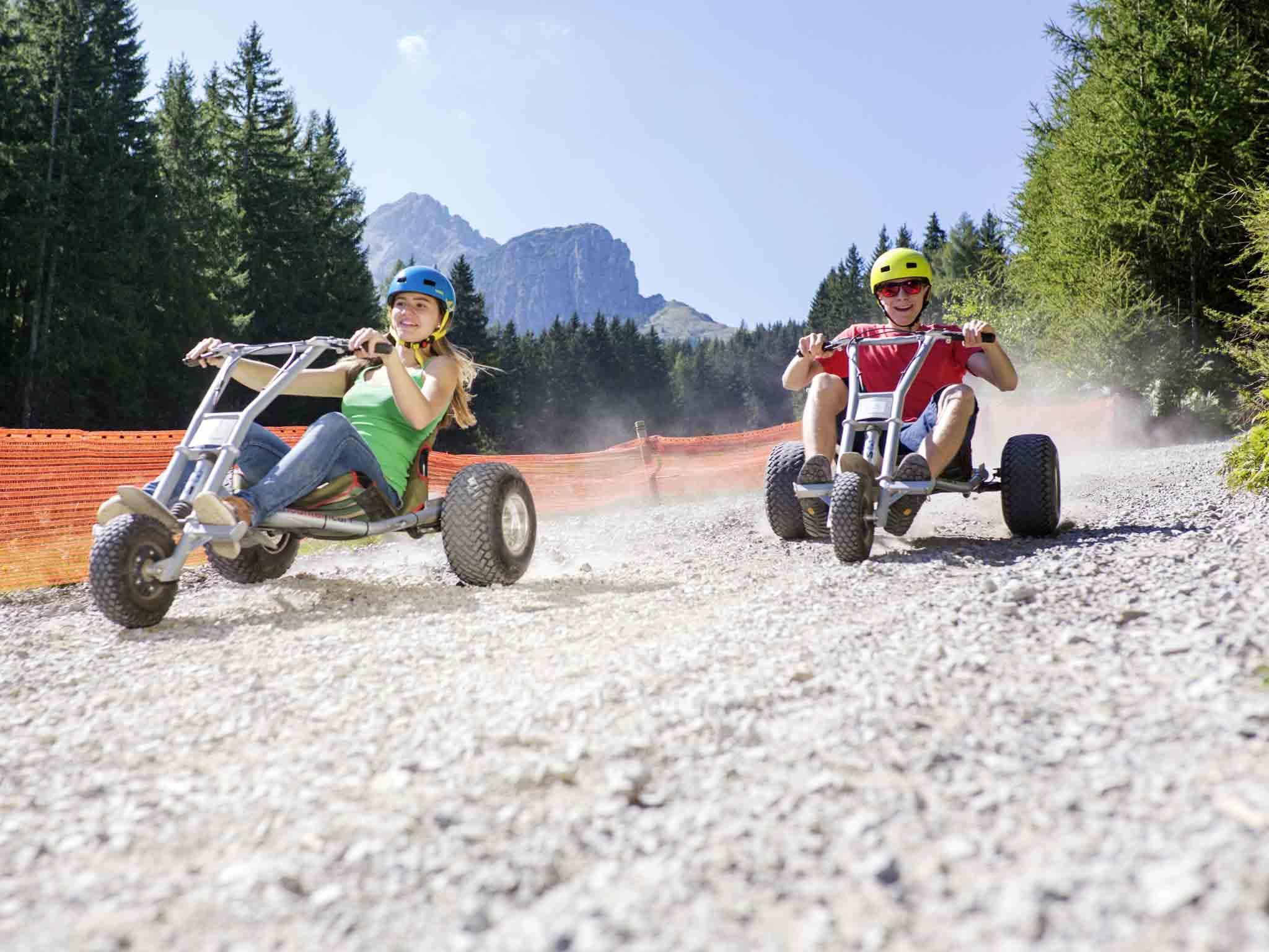 Tobogganing in summer – fast or slow, you decide, as you follow the dedicated 5 km long mountain cart track down into the valley.